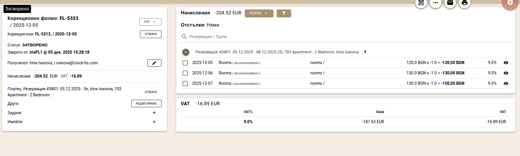 - Кредитното известие ще бъде издадено в EUR, като стойността се изчислява по актуалния курс.