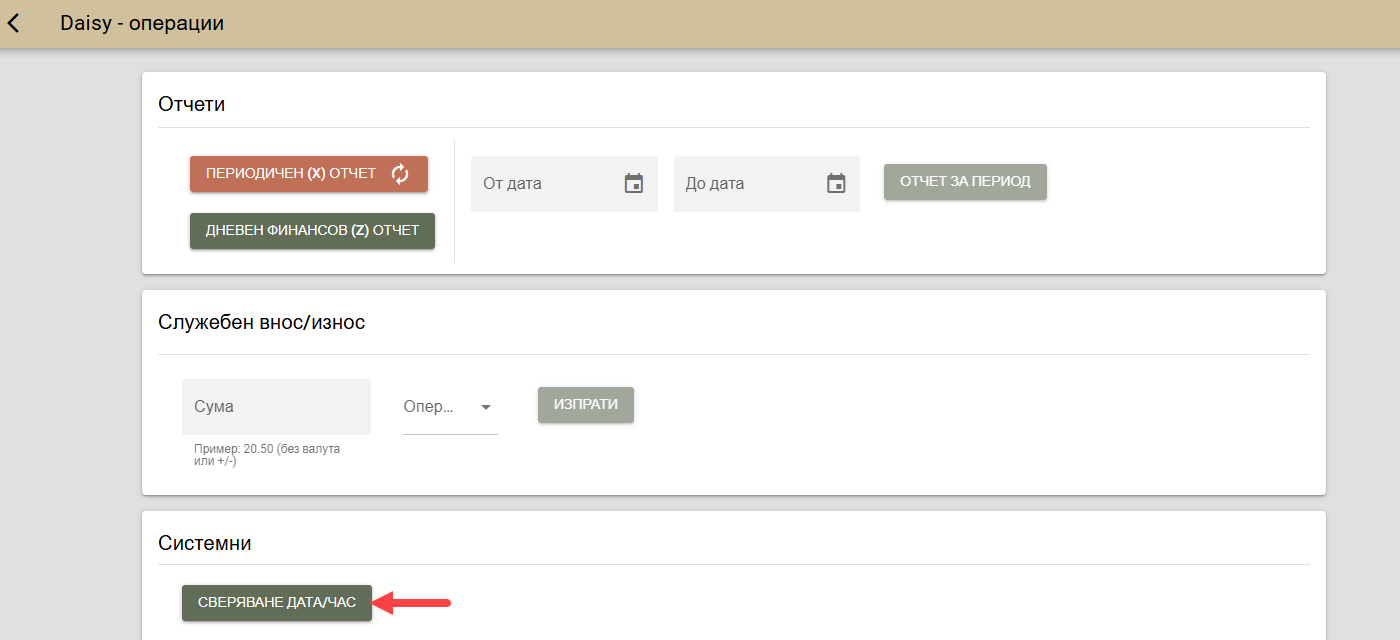 За да си гарантирате, че Clock и устройствата ще преминат едновременно към новия режим, е важно да се уверите, че часовниците на фискалните устройства са сверени.