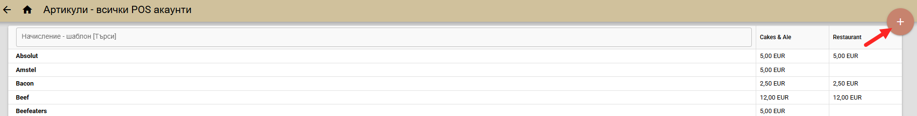 От основния екран изберете Управление → Настройки NEW → Меню → Артикули - всички POS акаунти.