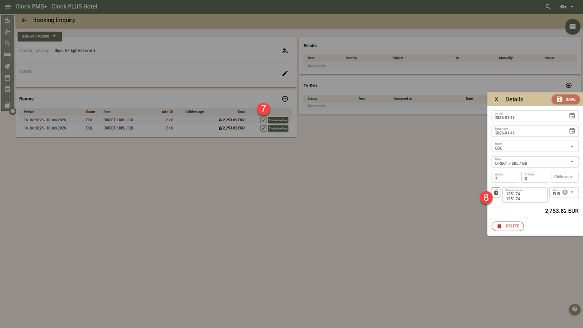 Eine Buchungsanfrage zeigt die Preise der Zimmer zu dem Zeitpunkt, zu dem sie hinzugefügt (angeboten) wurden. Dies sind keine Festpreise, sondern informative Preise, die zeigen, was Sie dem Gast angeboten haben. Wenn Buchungen erstellt werden, werden sie mit den Preisen zum Zeitpunkt des Erstellens versehen. Sie müssen also überprüfen, ob sich die aktuellen Preise gegenüber den von Ihnen gesendeten geändert haben. So geht's: