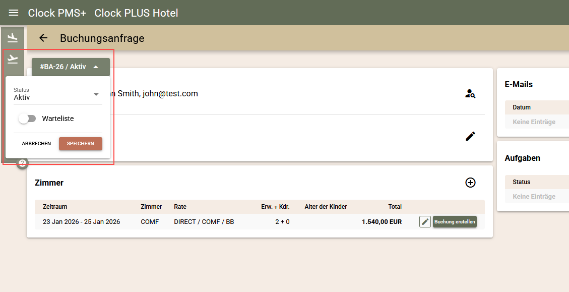 Buchungsanfrage Status und Warteliste