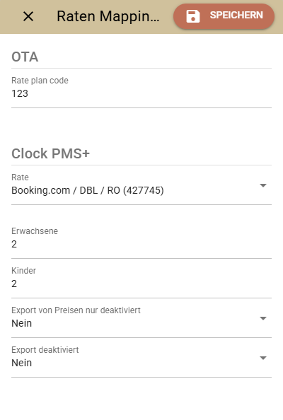 Um eine Clock PMS+ Rate mehreren Raten aus dem Channel Manager zuzuordnen, müssen Sie in der Mapping der Raten angeben, mit wie vielen Erwachsenen und Kindern die Rate auf Gästeebene berechnet werden soll.