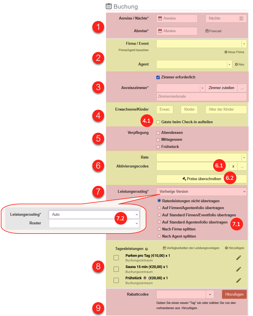 - Manueller Router (7. 2) - ermöglicht es Ihnen, eine Ausnahme von den automatischen Standard-Routing-Regeln zu machen, indem Sie einen bestimmten Router für diese Buchung aktivieren.