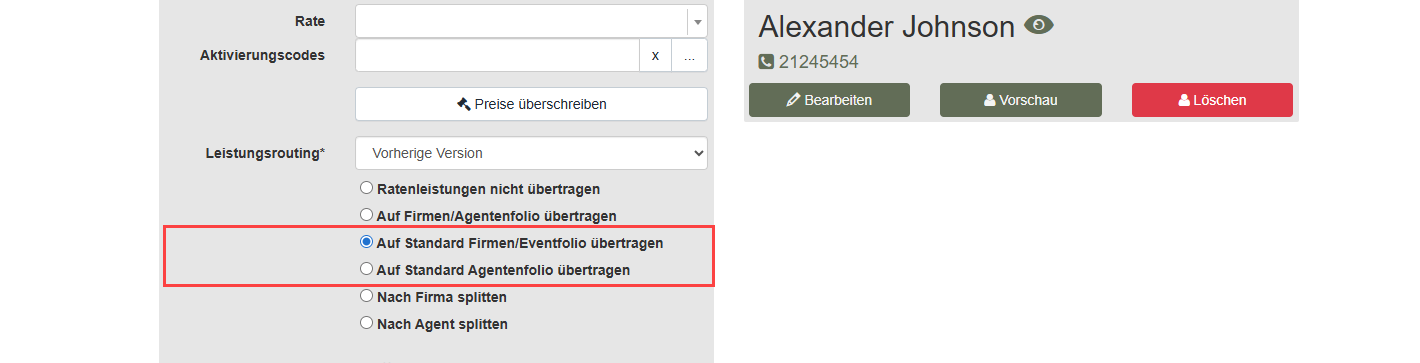 Funktionen 'Auf Standard Firmen/Eventfolio/Agentenfolio übertragen'