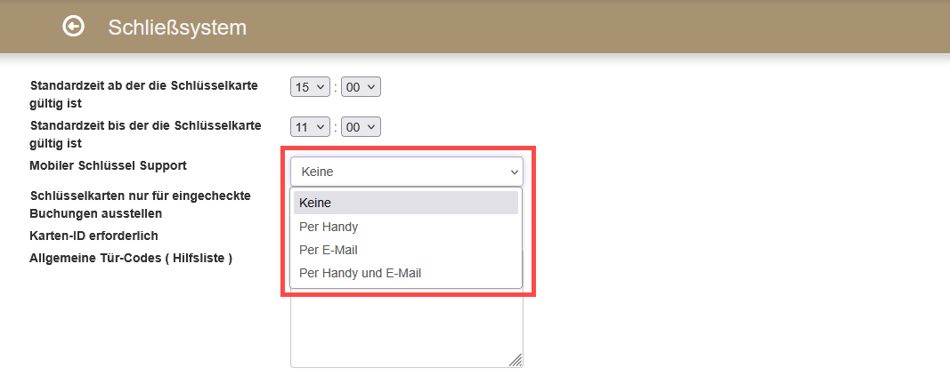Wenn Sie ein Zutrittskontrollsystem verwenden, das mobile Schlüsselkarten unterstützt, wählen Sie bitte aus, welche Optionen für die Übermittlung der mobilen Schlüsselkarte Sie verwenden werden.