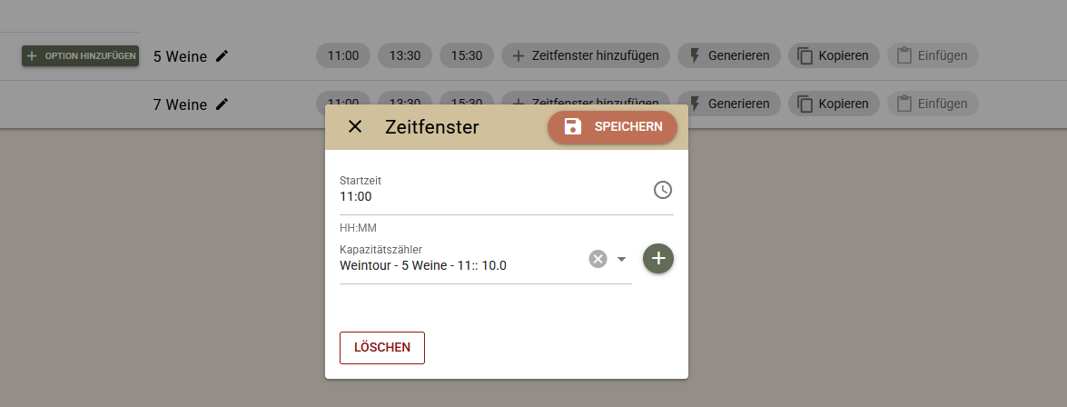 - Kopieren Sie die Zeitfenster aus „5 Weine” und fügen Sie sie in „ 7 Weine” ein.