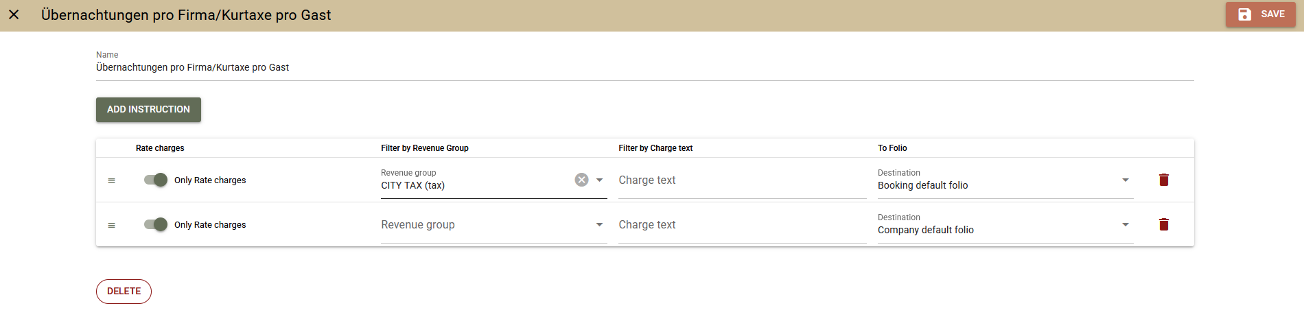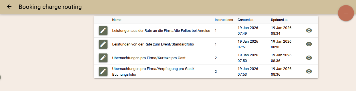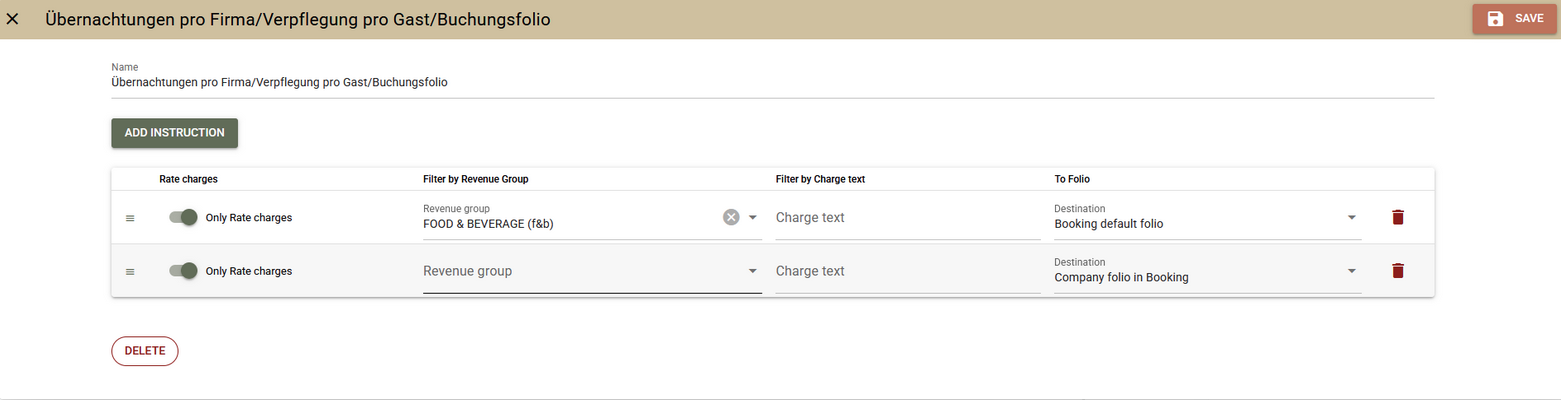 - Routing von Leistungen an bestimmte Folios zum Zeitpunkt der Abrechnung;