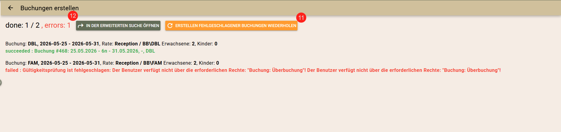 Über die Schaltfläche „In der erweiterten Suche öffnen“ (12) können Sie die erfolgreich erstellten Buchungen anzeigen.