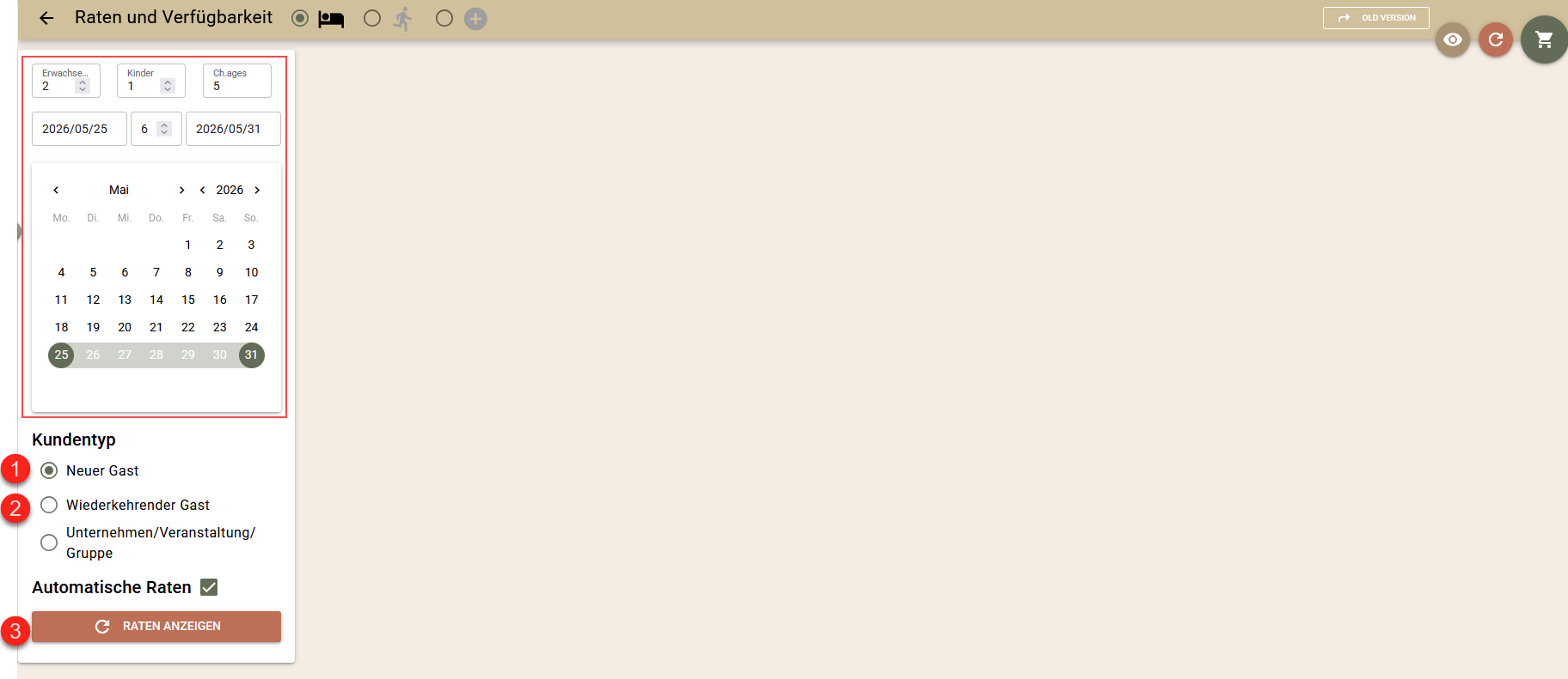 - Geben Sie die Anzahl der Gäste und gegebenenfalls das Alter der Kinder an.