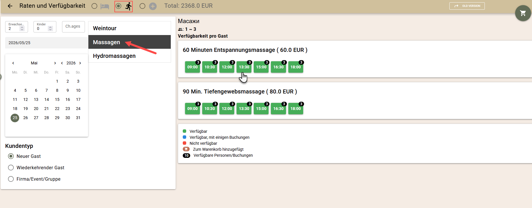 - Geben Sie ähnlich wie bei Zimmerbuchungen die Art des Kunden an.