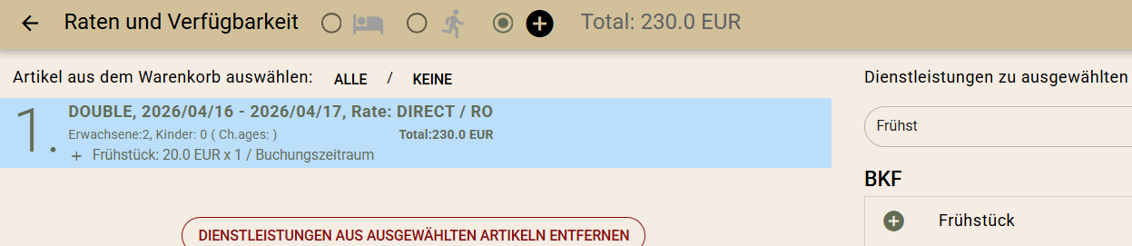 Dieser Prozess tritt in Kraft, wenn die Frühstücksleistung als Extra über eine der folgenden Methoden gebucht wird:
