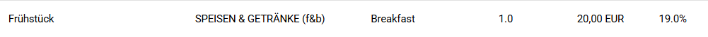 Im Folgenden zeigen wir am Beispiel Frühstück, wie F&B-Leistungen mit unterschiedlichen MwSt.-Sätzen korrekt gesplittet werden, sofern sie separat verbucht und nicht Teil eines Arrangements sind.