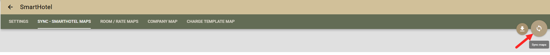 You have the option to download all room type and rate combinations, and SmartHotel extra services by using the "SmartHotel maps" Tab. Click on the "Sync maps" button in order to download the current setup from SmartHotel: