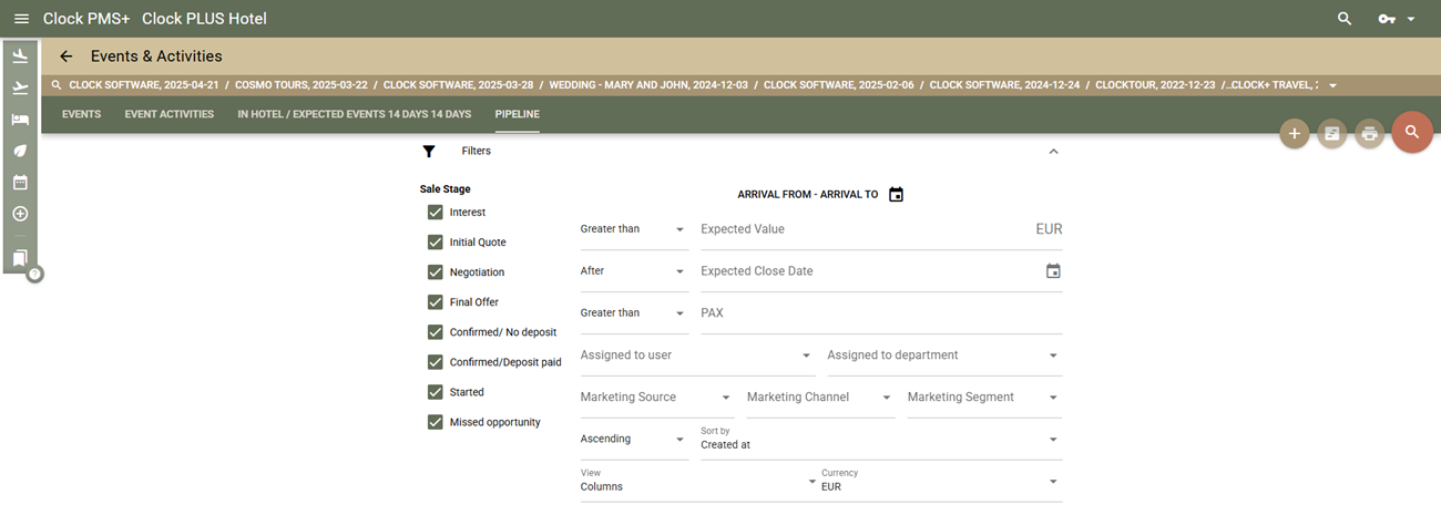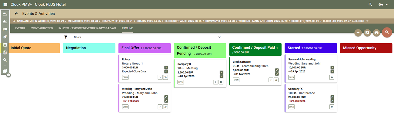 Many of you wanted us to find a solution to the case study related to the management of Event Sales Pipelines. Events have a more complex sales process that goes through different steps. Tracking the progress of each deal requires more than the currently available statuses. Additionally, each hotel has its own habits and its own deal management procedure. To solve the case studies related to sales organization, we added “Sale Stages as well as new Pipeline screen to focus on the clear management of all transactions.