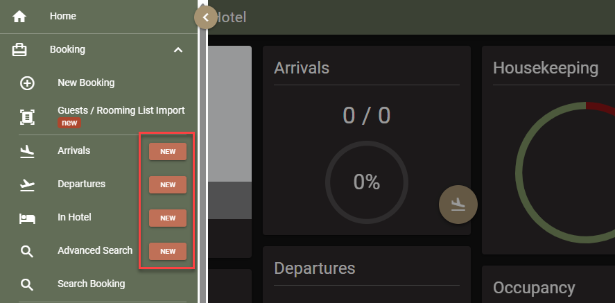 We have completely redesigned the main booking search screens - Arrivals, Departures, In Hotel and Booking Advanced Search. They are now significantly more interactive, functional and fast, and we've increased their performance by an impressive 400%. So you can serve your guests faster and more efficiently. You can access the new screens by selecting Bookings from the navigation menu and then clicking on the "NEW" button in the appropriate row.