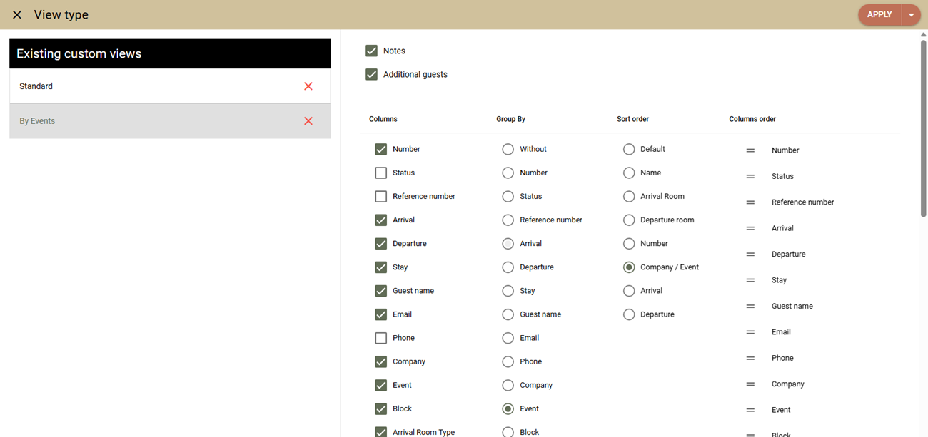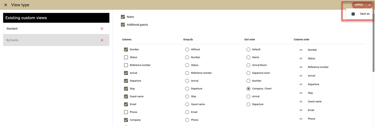 - Columns order - Arrange the columns so that they are most convenient for you. Choose whether the booking number should be the first or last column. Arrange the information according to your needs.