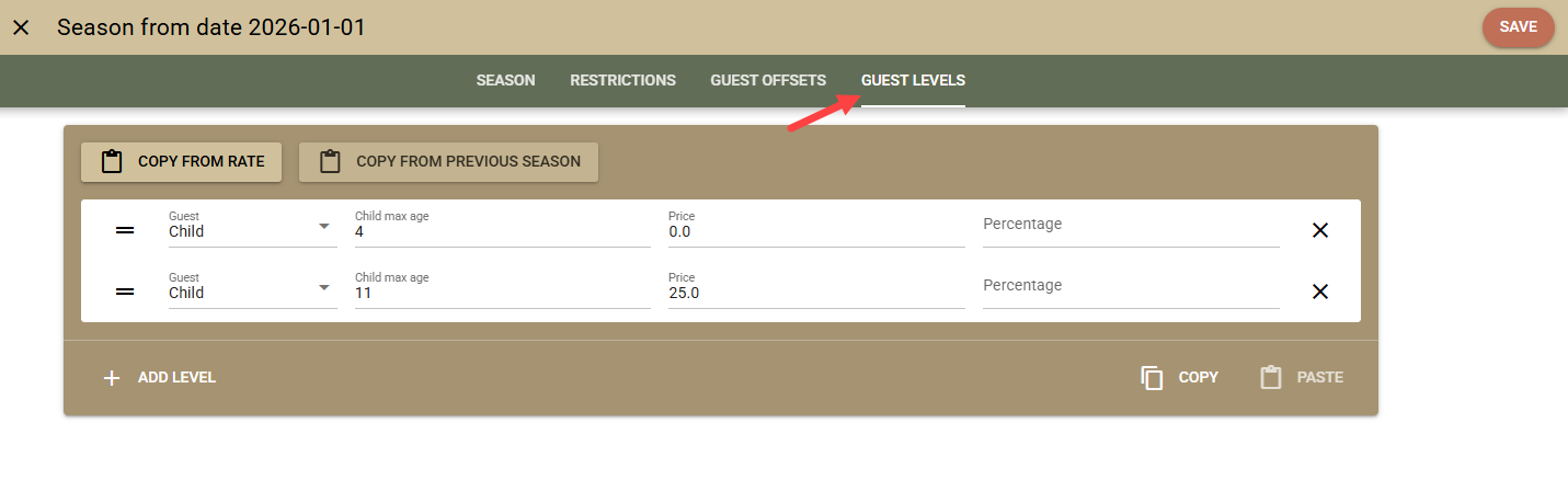 - Mark the "Per guest" rate, because the surcharge is different for adults and children.