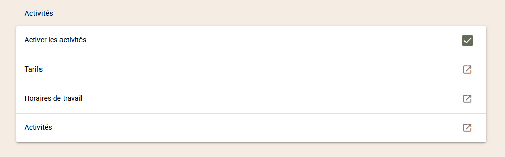 Si vous proposez des activités supplémentaires telles que des dégustations, des excursions, des cours de yoga, etc., vous pouvez les inclure dans la vente via WBE. Pour plus d'informations, consultez ICI.