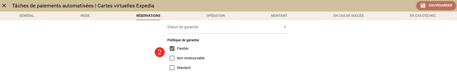 - (2) - La tâche pour traiter uniquement les réservations avec la politique de garantie 'Flexible 50%'.