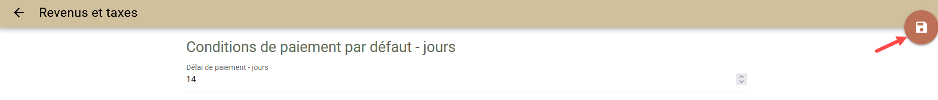 Pour faciliter le contrôle et le suivi des paiements dans le cadre des folios clôturés, vous pouvez définir un délai de paiement standard pour un folios clôturé. Pour ce faire, allez dans la barre de navigation et sélectionnez Paramètres->Tous les paramètres-> Documents->Délais de paiement par défaut - Jours.
