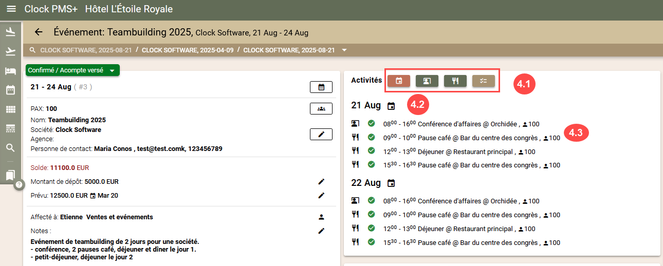 - En cliquant sur une date particulière (4.2), vous ouvrirez le calendrier des activités pour cette date.