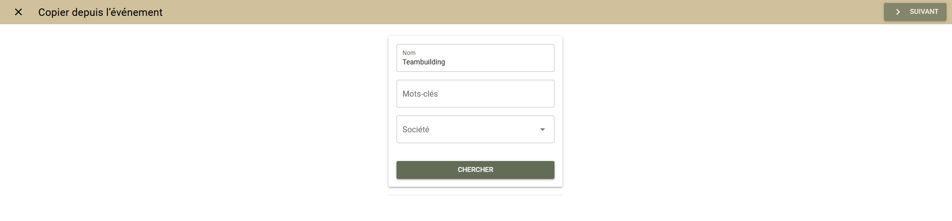 - Une fois que vous avez trouvé l'événement à partir duquel vous souhaitez copier des informations, sélectionnez-le et cliquez sur Suivant.