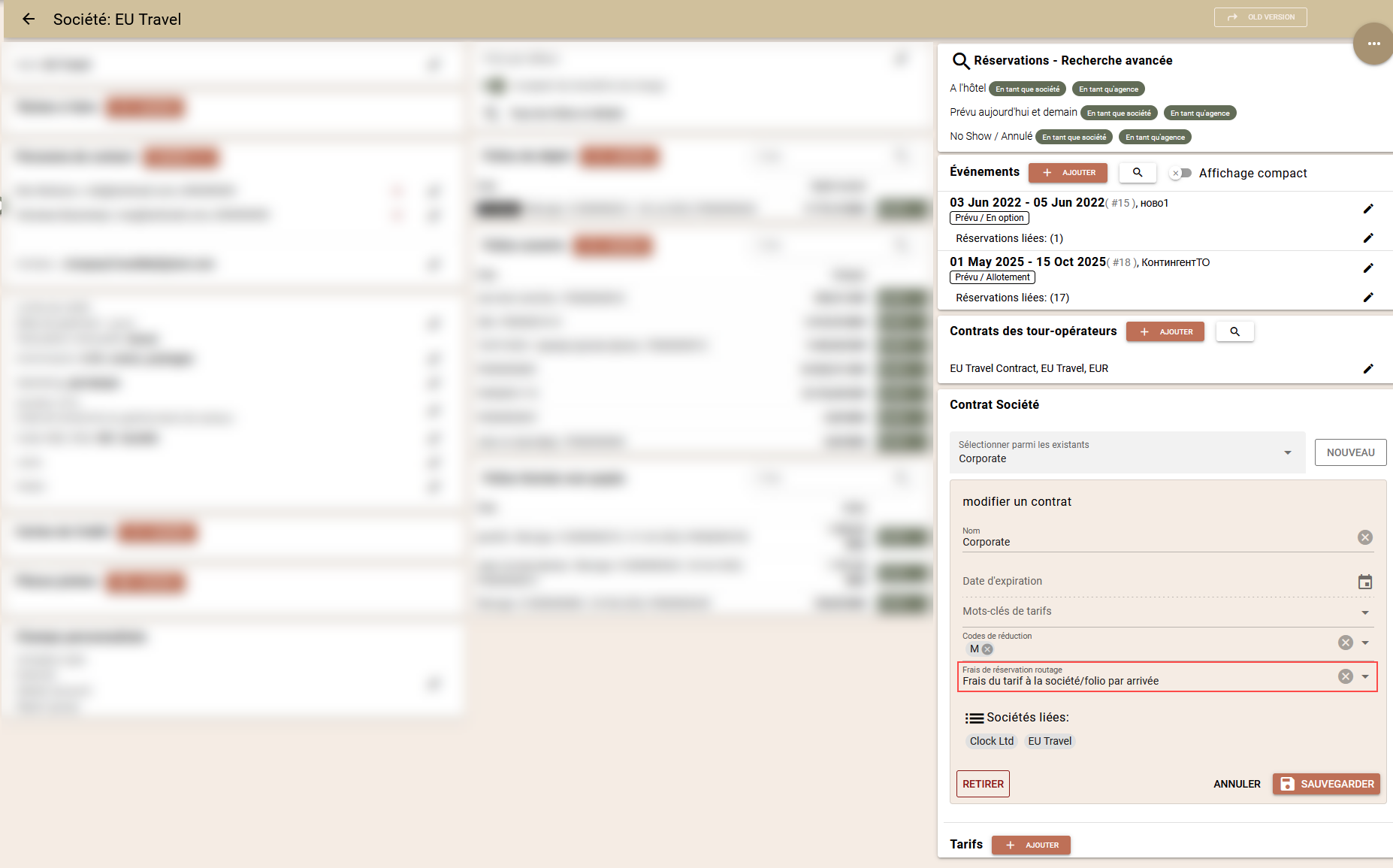 Pour éviter des résultats inattendus, il est recommandé d'utiliser les sociétés dans le même rôle – soit en tant qu'Agence, soit en tant que Société dans les réservations.